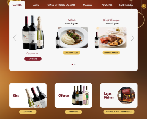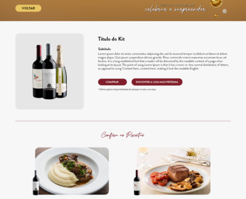 Os requisitos principais eram proporcionar facilidade ao usuário para encontrar os links de cada rótulo em oferta, bem como garantir uma navegação fluida para apresentar as opções de harmonização com diferentes tipos de pratos.