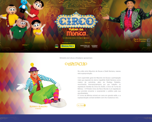 O Circo Turma da Mônica é o espetáculo mais grandioso já realizado pela Mauricio de Sousa Produções, com 21 artistas no palco, 90 figurinos e mais de 10 toneladas de cenografia.