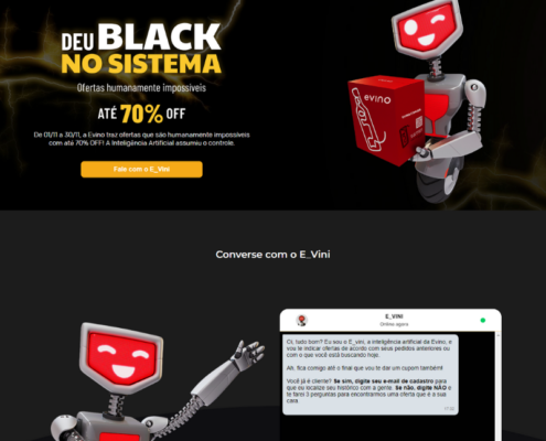 Mais uma vez nós temos o prazer de trabalhar com a Evino, e neste projeto o desafio do nosso time foi desenvolver um website para a campanha de Black Friday ‘Deu Black no Sistema’.