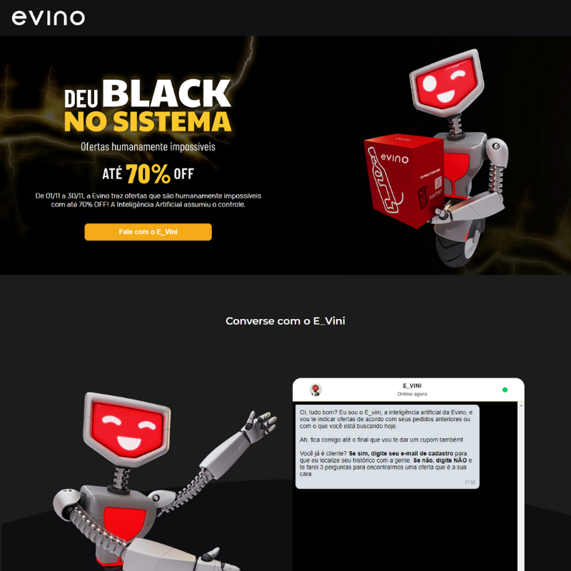 A IA desenvolvida também é capaz de encontrar ofertas com base no histórico de compras de quem já era cliente da Evino e distribuir cupons de desconto, bastando o usuário digitar o e-mail de cadastrado.