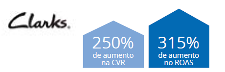 Resultado: a Clarks notou uma impressionante CVR (taxa de conversão) de 4,5% com as RLSAs em comparação com a taxa para novos visitantes, que é de 0,7%. “Para cada dólar que gastamos, recebemos seis de volta. Alcançamos resultados extraordinários”, diz John Ashton, chefe de varejo multicanais.