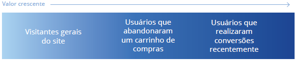 Seus melhores leads são as pessoas que demonstraram grande interesse na sua marca ou foram longe no seu funil de conversão: os usuários que realizaram conversões recentemente e os que abandonaram o carrinho de compras.